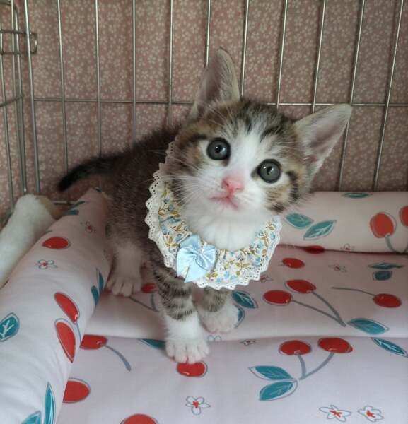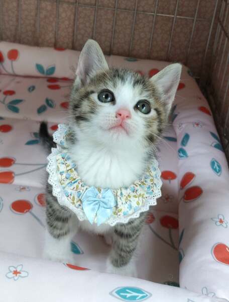 | 里親募集する理由 | 猫の増えている地域で、不妊手術を続けているのですが、そこで授乳中の母子を見つけました。 母子一緒に保護したところ、嬉しいことに母猫に里親さんが決まりました。 |