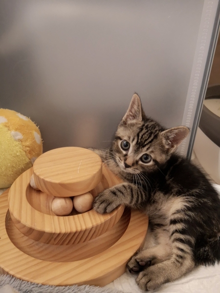 | 特徴(性格など) | 【名前】 つくしくん 【柄】 キジトラ 【性格】 目が合うだけでゴロゴロ…。手を添えるだけでお顔をぐりぐり…。 ヒトが大好きで、本当に最高に性格が良いです。 ご飯も大好きで、他の子は食べ終わって遊んでいても最初から最後までずっとお皿に顔をうずめて終始ゴロゴロご機嫌です(笑) もう飢えることは無いと分かってくれれば、お腹がはちきれそうになるまで食べ続けなくなるかな? マイペースで一人遊びも上手ですが、兄妹とも元気に走り回っています。 【健康状況】 ウイルス検査=陰性 駆虫、便検査済 つくしくは生まれつき心疾患があります。 症状としてはむせるような、咳のような呼吸が1日に何度かありますが、すぐ数秒で収まります。 収まればまたすぐに元気に跳ねまわり、兄弟と転げまわって遊んでいます。 詳細の検査はもう少し大きく成長しないと出来ませんが、最近は症状の回数が少なくなってきたように思います。 成長するにつれ健康になる可能性も大いにあります。 |
