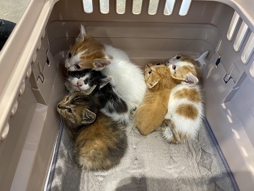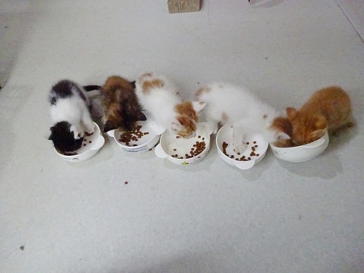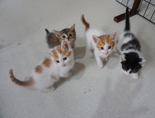 | 特徴(性格など) | ノミダニ駆除済み 検便済み エイズ白血病ともに陰性 5/20日頃生まれ 生後1か月の子猫の兄弟です 保護したときは風邪をひいていて目はぐちゅぐちゅでしたが治ってきました これからどんどんかわいくなると思います サビは女の子 それ以外の4匹は男の子 子猫達がいる部屋に行くとみんなで走ってきてお出迎えをしてくれました 人慣れした甘えん坊の可愛い子猫達です |