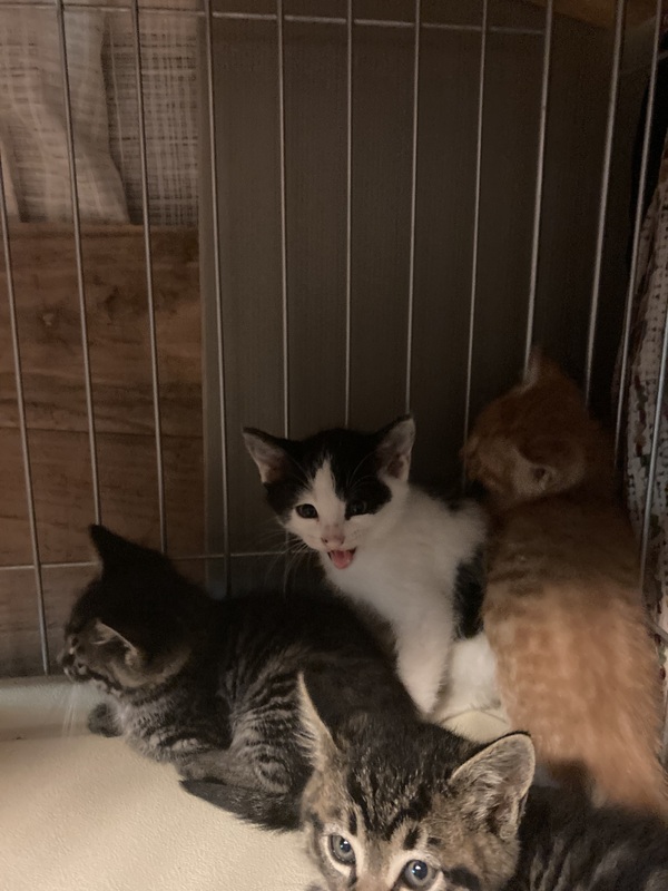 | 里親募集する理由 | 高齢の方のお宅の庭に母猫と子猫4匹が棲みついてしまい、困っておられたのでボランティアの方に連絡を取り捕獲。近くのカフェで保護して頂いています。 母猫は、一歳くらいの綺麗な三毛猫です。避妊手術済、3種ワクチン済、エイズと白血病検査いずれも陰性でした。 子猫達は生後2カ月カ月ほどと思われます。餌はドライとウエットフードのどちらも食べておりとっても元気に育っています! 母猫が美人なので、子猫達もすごくかわいいです。 縁あって保護させて頂きましたが、猫たちに安心して暮らしてもらうため里親を探しております。 ご連絡お待ちしております。 |