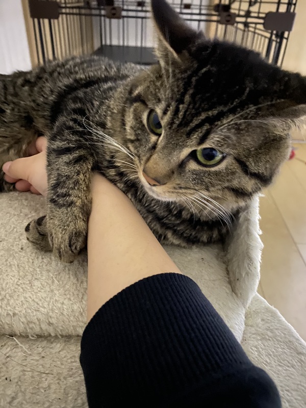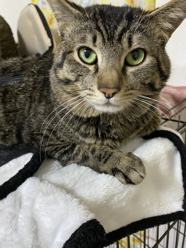 | 特徴(性格など) | ・少し警戒心が強いです ・賢く、部屋に慣れてくると自分でドアを開けて脱走してしまいます(脱走防止のためゲージに入れています) ・食欲旺盛で他の猫の分まで食べてしまいます ・先住猫3匹のうち1匹と相性が悪く喧嘩をしていますが、残りの2匹とは仲良く過ごしています |