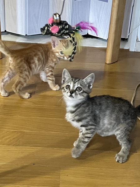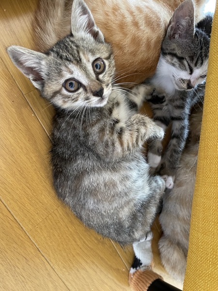 | 特徴(性格など) | サバトラ しっぽはまっすぐ長くきれいです 只今家猫訓練中(保護して6日) 既におもちゃでよく遊びトイレも完璧、離乳も完了しました |
