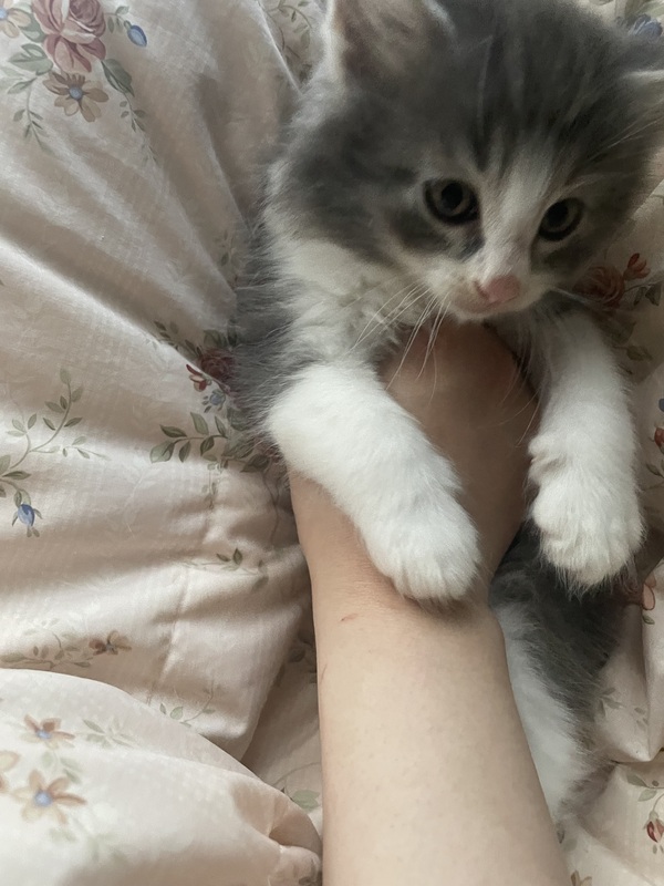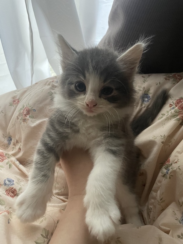 | 特徴(性格など) | グレーと白の三匹 オス、メスは素人の個人判断ですので、ご了承下さい。 わんぱくで元気です。まだ産まれて間もない為、ワクチン接種をしておりません。 どの子もとても可愛く、立派なノルウェージャンフォレストキャットになると思います!!小さくて一番可愛い今のうちに里親様を募集いたします。 白の多い子 メス、ふっくら、人懐こい しっぽの先が白い子 オス、おっとり、小柄 黒が多い子 メス、おとなしい、小柄 |