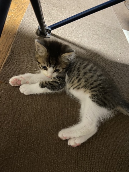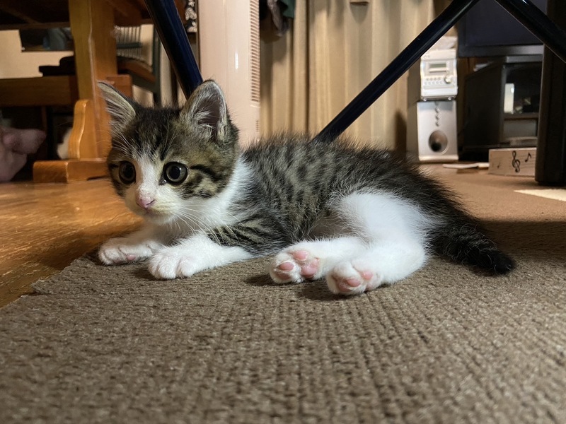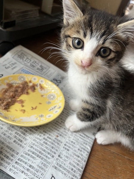| 特徴(性格など) | キジ白の元気な男の子です。 ボールや猫じゃらしで楽しく遊んでます ふやかしたカリカリやウエットのご飯もよく食べてます。 |