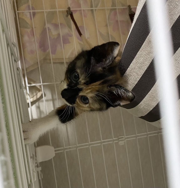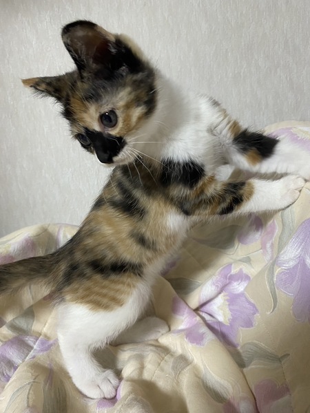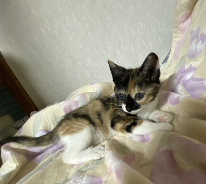 | 特徴(性格など) | <初期医療> 健康状態:良好 白血病ウイルス検査:陰性 エイズウイルス検査:陰性 ワクチン接種:済み ノミダニ駆除薬:済み 糞便検査:済 性格も可愛くて、ベリーキュートな三毛猫の女の子です。 フードもよく食べ、トイレもバッチリです。 やんちゃな甘えん坊で、ナデナデも抱っこも大好きです。 1匹でも大丈夫ですが、兄の茶々丸(茶白猫)と一緒に迎えてくださる里親様を希望します。 まだ小さな子猫なので、お留守番のあるおうち、高齢者様、単身者様はご遠慮ください。 |