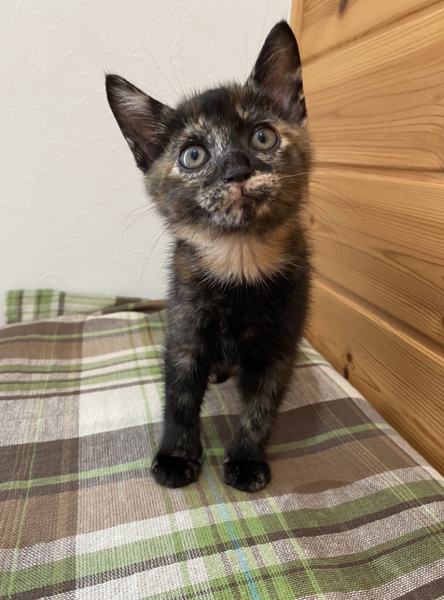 | 特徴(性格など) | サビ柄の女の子です とてもよく人慣れしています 兄妹達とも元気に走り遊んでいます お腹をなでなですると、うっとりして眠ります とても可愛い子です |