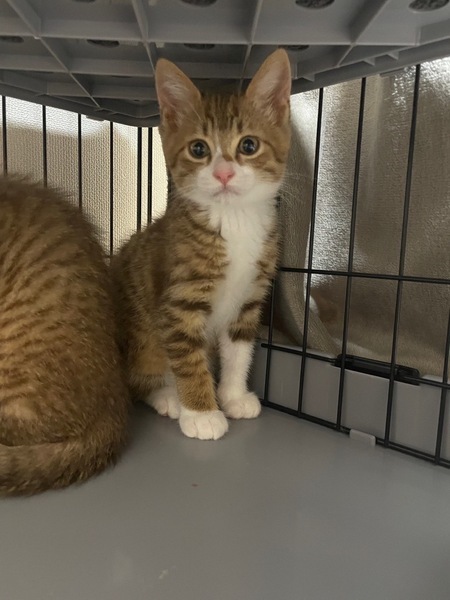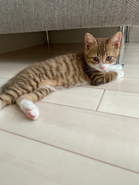 | 特徴(性格など) | 仮名:チャイ 4兄妹の中のお兄ちゃん的存在。 前足片側だけハイソックスを 履いてるみたいなのが特徴です。 元気いっぱいです♪ 健康状態 食欲もありお腹の調子も良く健康的です。 体重 1.0kg(6/29) *母猫がウイルス検査で陰性でした。 今後の医療措置 去勢手術 |