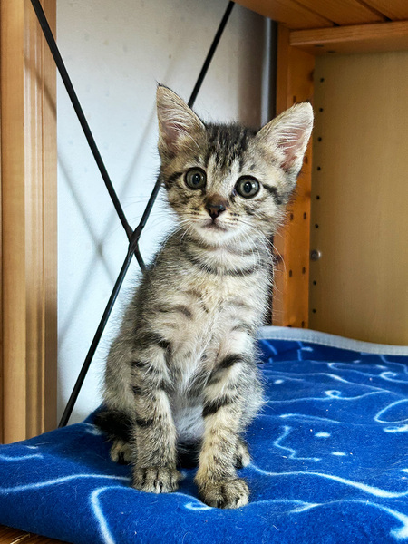 | 特徴(性格など) | 5月8日に生後数日から育てたキジトラ柄の女の子です。 仮の名をそらちゃんと呼んでいます。 5月8日に、生後数日のまだ目も開いておらず乾いた臍の緒も付いたままの状態の時に、米袋に入れられ川に投棄されていたのを救いあげられたキジトラ柄の女の子です。 145gでした。 妻が大怪我のため長期入院中なので、ずっと私がひとりで世話をして育て、昼間は仕事に出るので平日の昼間だけ近所の親戚親子にサポートを頼みここまで大きく育てました。 現在820gの体重です。 とても活発ですが性格は膝の上が大好き、目が合うとにゃーにゃー話しかけてきてくれて、私と親戚が大切に育てましたので超甘えん坊、様子を見に来る友人にも全く人見知りせず、どなたにでもフレンドリーです。 びっくりするほど人には警戒しませんし、凶暴性はありません。 |