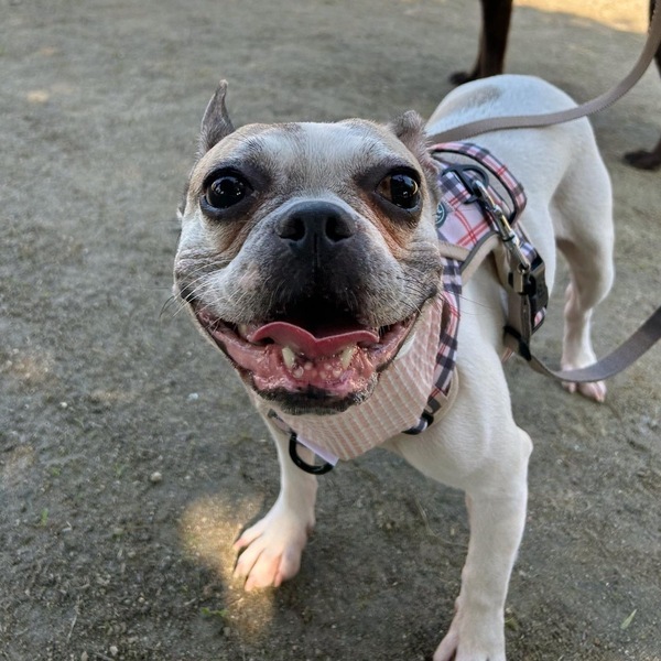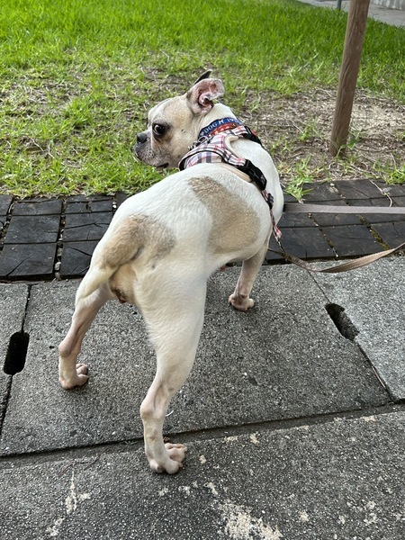 | 特徴(性格など) | 名前:チーズケーキ 犬種:フレンチブルドッグ 性別:メス♀ 毛色:クリーム 年齢:6歳くらい 体重:9.9kgくらい 性格:人が大好きな甘えたさん 人には誰にでもフレンドリーです。 とにかくずっと構ってほしくて、ぴったりくっついてきて片時も離れません。 お散歩が大好きです。 おもちゃは熱中しすぎるので、人が見ている時だけにしています。 おもちゃを取り上げても怒ったり不満な素振りはありません。 他のわんことの接し方が下手で、自分より体の小さい子にはマウンティングをしてしまいます。 身体の大きくておおらかで人に執着しない犬とだったら相性次第で上手くやれます。 おトイレは練習中。 ペットシーツの認識はありますが、毛布にもしてしまいます。 お留守番は 人がいなくなると寂しくて吠えてしまいますが、すぐに諦めて静かにお留守番をしてくれます。 幸せにしてくれるご家族様をお待ちしております。 |
