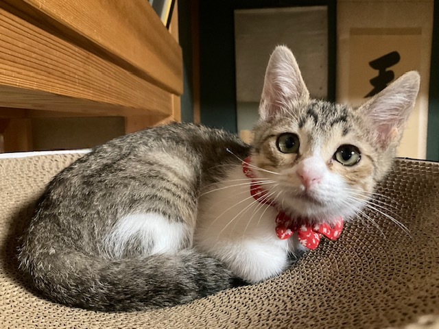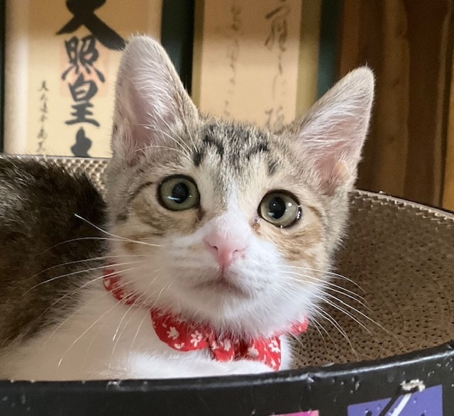 | 特徴(性格など) | ☆☆☆ご希望の方は、以下のアンケートフォームにご記入の上、送信してください☆☆☆ ねこ親希望アンケート→ http://chibawan.net/contactform_cat 【猫No】3672 【愛称】あおい 【性別】メス 【年齢】3ヶ月(23/04月上旬生) 【毛色】キジ白・長しっぽ 【体重】900g(23/07/02現在) 【状態】ノミダニ駆除済、猫風邪治療済、ワクチン1回接種済(23/06/13)、血液検査済(エイズ-・白血病-) 【保護場所】野田市 【日記】http://instagram.com/kemikemi1206 Instagram @kemikemi1206 【経緯】千葉県動物愛護センター東葛支所より引き出しました。 【性格】ちょっぴり怖がりさんで、初めての場所や人に緊張しますが、慣れれば元気で活発に遊びます。 おもちゃが大好きで、知育おもちゃなどにじっくり取り組んで遊んでいます。 控えめで いつも誰かの後ろにそっと隠れていましたが、一度何かに興味を持つと食らいついて遊び、子猫らしい側面が見られるようになりました。 人間のことは最初は恐々といった感じでしたが、どんどん人馴れが進んでいるので、そのうち慣れ慣れになると思います。 一緒に生まれ育った兄妹のひいろがよき遊び相手となっておりますので、兄妹一緒に迎えて下さるご家庭を希望します。 (1匹のみをご希望の方は応募をご遠慮下さい) 2匹一緒であればお留守番も寂しくないと思います。 育ち盛りのあおいの日々の様子や、育児日記の悲喜こもごもなどをインスタグラムに毎日アップしています。 子猫との生活がどんなものか、また、あおいの性格なども垣間見えるかと思いますので、ぜひご覧下さい。 【補足事項】幼い頃に罹った猫風邪の影響で涙目になることがあります。 適宜点眼薬で対処しております。 【その他】完全室内飼育で終生愛情を持ってあおいと暮らしていただける方、脱走対策を労を惜しまず入念に施してくださる方、定期的なワクチン接種や、その時々において必要な医療処置等の健康管理を約束していただける方からのお問い合わせをお待ちしております。 可愛いあおいに会いに、預かり宅までいらして下さい! ※ 大変申し訳ないのですが、猫が幼齢のため、55歳以上の方からのお申し込みはお断りする場合がございます。 ※ 猫との暮らしが初めてのお子さまには、アレルギー検査をお勧めしております。(短時間猫と触れ合った経験だけではアレルギーの有無はわかりません) 責任ある終生飼育には必要なことですので、ご理解下さいませ。 |