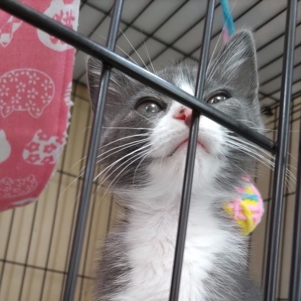 | 特徴(性格など) | 愛護センターから引き出してきて、預かりさんのおうちについた途端に遊びまくり、疲れ知らず、人見知りゼロ!はつらつと元気一杯な男の子です。ご飯もモリモリ食べ、トイレもバッチリ。抱っこするとずっとグルグルゴロゴロ。嬉しくて仕方がない様子です。ケージで寝ていても、ふと振り向くとじっとこちらを見つめていたりします(笑) 人馴れ完了していて、好奇心旺盛で恐れを知らぬやんちゃ坊主なので、とにかく脱走にはご用心!まだセンターからきて間もないので、これからどんな面を見せてくれるか保護主も楽しみにしています。 健康管理をしっかりしてくださる方、また安全に暮らせる様にお部屋のお片付け、目に見える形での脱走防止対策を徹底してくださる方とご縁がつながると嬉しいです。対策等でわからないことは アドバイスさせていただきますので、疑問点などは遠慮なく聞いていただきたいです。 ご自宅の玄関・開ける窓・ケージを置くお部屋などのお写真をご持参いただきますと、より具体的なお話ができると思います。 |