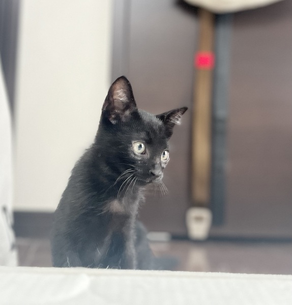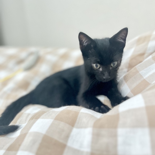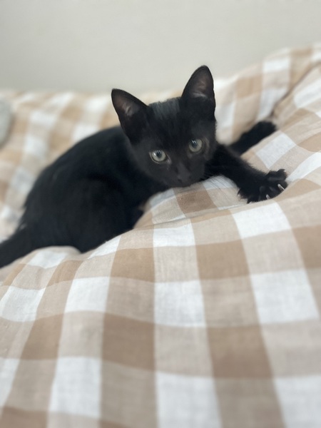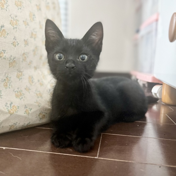 | 特徴(性格など) | 遊ぶことが第一優先の とっても素直な性格の男の子♪ 闇に溶け込む小さな体で俊敏におもちゃを狙います。 ちょっぴりビビリで、予想外の音や動きには しっかりびっくりリアクションをします(笑) 兄弟の中では一番小さくて遠慮がちなところがあります。 兄弟のくさつくん、いかほくんと一緒のお迎え大歓迎です! 安心安全な環境のご用意をお願いいたします。 脱走対策など、わからないことがあればしっかりアドバイスさせていただきます。 |