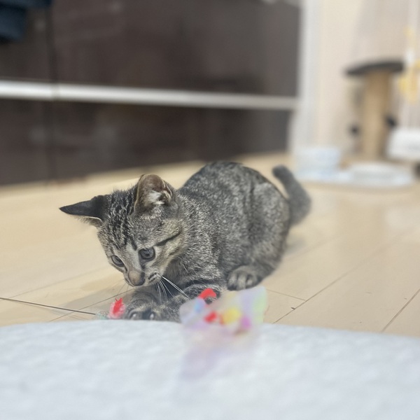 | 特徴(性格など) | 好奇心旺盛! おもちゃに目がなくて、兄弟の中では1番よく遊びます。 エモノを捕えると誰にも取られたくなくて唸りながら蹴散らします(笑) 物怖じしないので新しい環境すぐに馴染めると思います。 兄弟のいかほくん、しまくんと一緒のお迎えも大歓迎です! 安心安全な環境のご用意をお願いいたします。 脱走対策など、わからないことがあればしっかりアドバイスさせていただきます。 |