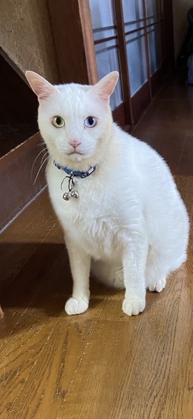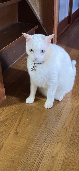 | 特徴(性格など) | 白猫、落ちついてます 人懐っこい性格で夜は一緒に寝てくれます friendly and calmly and he sleeps with you |