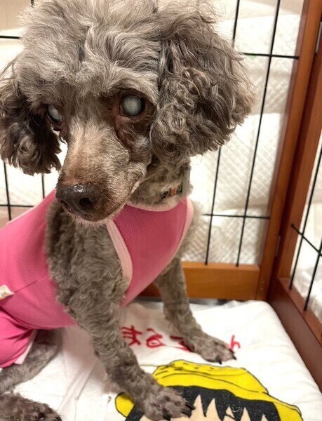 | 特徴(性格など) | 性格・特徴 【性格】 ぼんやり見えているようで、環境に慣れてくると甘えっ子全開で後追いしてくれる所がとっても愛おしいです。 初めは怖がりさんですが、安心できるといっぱい愛情表現してくれます。男性は苦手なようですが、のえちゃんのペースでどんどん仲良くなっていって下さい。 【ご飯】 ドライフード(シュプレモでお願いします)45gを1日2回食べてます。 フードは急な変更でお腹を壊さないよう、シュプレモでお願いします。 【お散歩】 お散歩が大好きです。楽しそうに歩きます。 迷子札は、首輪に刻印式のIDカラーで装着して頂く事と、ダブルフック型ショルダーリード使用のお約束をお願いします。 【トイレ】 トイレシートの認識はまだありませんので引き続き、トレーニングお願いします。 トレーニングのご相談は承りアドバイスさせていただきます。 【お留守番】 サークルでお留守番できます。 (ソフトサークルは禁止とさせていただきます) 健康状態 ※ 医療に関しまして、当会では、里親様にお繋ぎするまでに、検査や手術、治療等のレスキュー団体で出来る最大限の努力の上で譲渡活動を行っております。ご理解頂ける方のみご応募ください。 名前 のえちゃん 犬種 トイプードル 年齢 8歳くらい(推定) 性別 女の子 体温 37.3度 体重 4.8kg 口腔 歯石除去 歯肉炎等処置済み 眼 白内障(光を感じる程度と思われます) 心雑音 異常なし 検便検査 異常なし 血液検査 異常なし フィラリア 陰性 レントゲン 異常なし 避妊手術 済み 心電図 異常なし ノミダニ予防 済み ワクチン 接種済み(2023.7.6) 虫下薬 投薬済み(2023.6.14) 狂犬病予防注射 猶予証明取得 畜犬登録 済み マイクロチップ 挿入済み |
