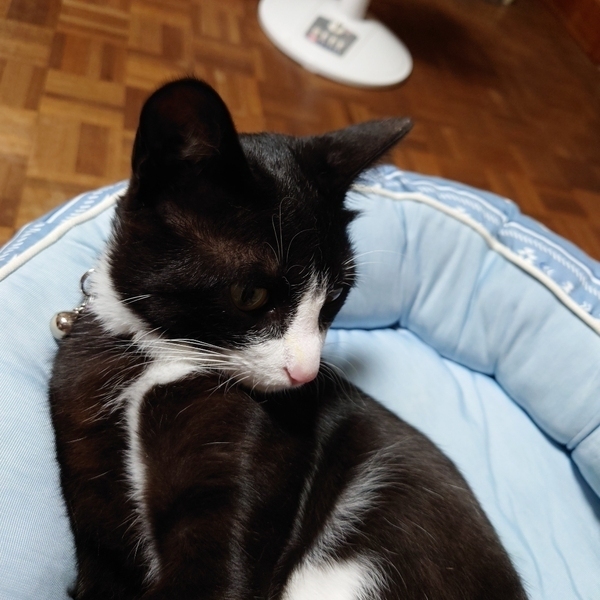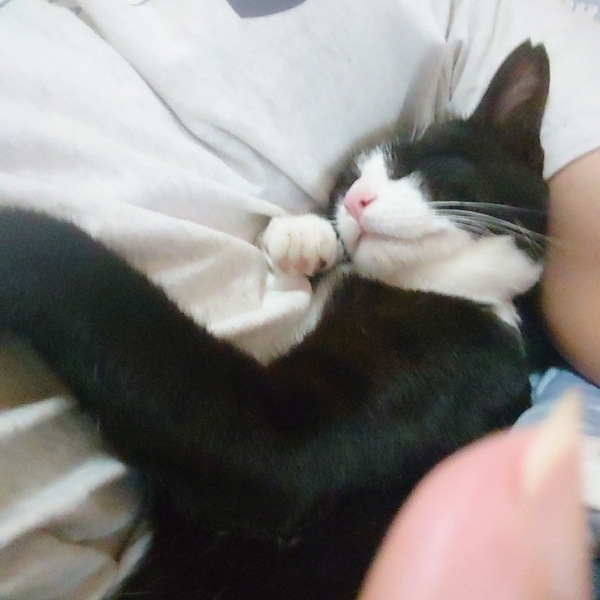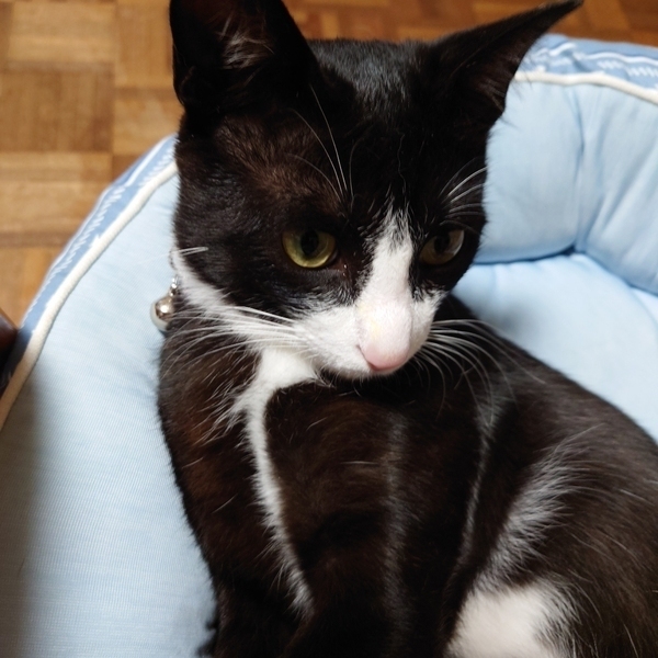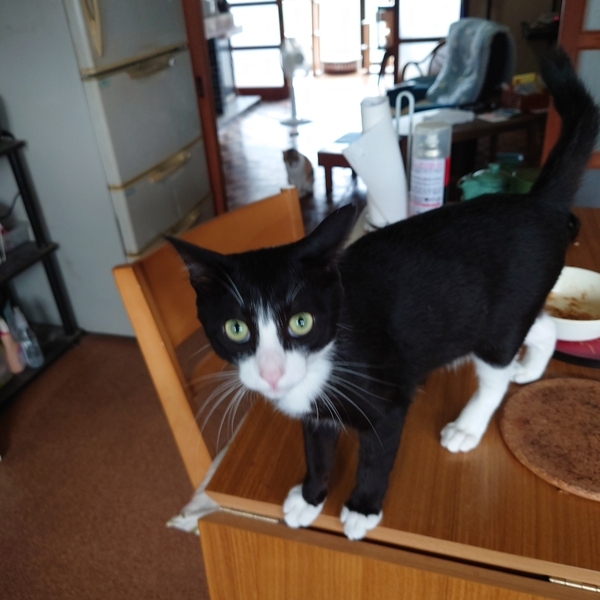 | 特徴(性格など) | 黒白ハチワレ 甘えん坊の食いしん坊です 6月に去勢手術しましたが獣医さんのミスで男の子なのに左耳をカットされました(T_T) |