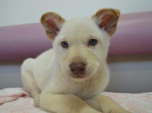 | 特徴(性格など) | グレーの眼が神秘的 変わった色だと視力が心配ですが、特に問題は無さそうです 他の犬とも仲良くできる優しい子です 12kg前後の予想です |