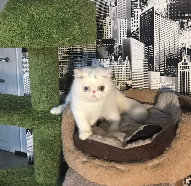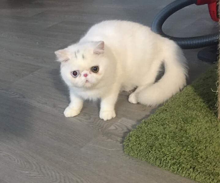| 特徴(性格など) | エキゾチックショートヘアーのオッドアイ白「王子」くんの里親を募集しています。 2020年7月27日生まれのオスです。 とてもフレンドリーで甘えん坊な王子くんです。 知らない人にも近づき、足元ですりすりしながら「撫でて!」とお願いします。 ただし、他の猫に対しては少々「ジャイアン」的な性格を持っています。 特にいじめたり喧嘩を売るわけではないのですが、 とにかく自分は「王子様」だという意識が高いのかもしれません。 これがある意味で彼の面白さなのです。 彼は非常に健康なのですが、 毛が白いため汚れやすく、 目や口の周りは毎日拭く必要があります。 定期的にブラッシングしてとお風呂にも入れてあげてください。 |