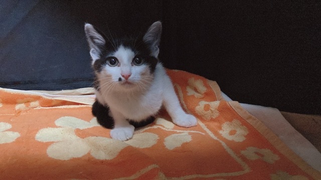 | 特徴(性格など) | ☆大きな瞳とお耳が可愛いハチワレの男の子です☆ 病院に検査に行く時もおとなしくて、 とても良い子です。 すぐにトイレも覚えてくれて、 ケージの中から外を覗いている可愛い顔は まさに“福ねこちゃん”です!! |