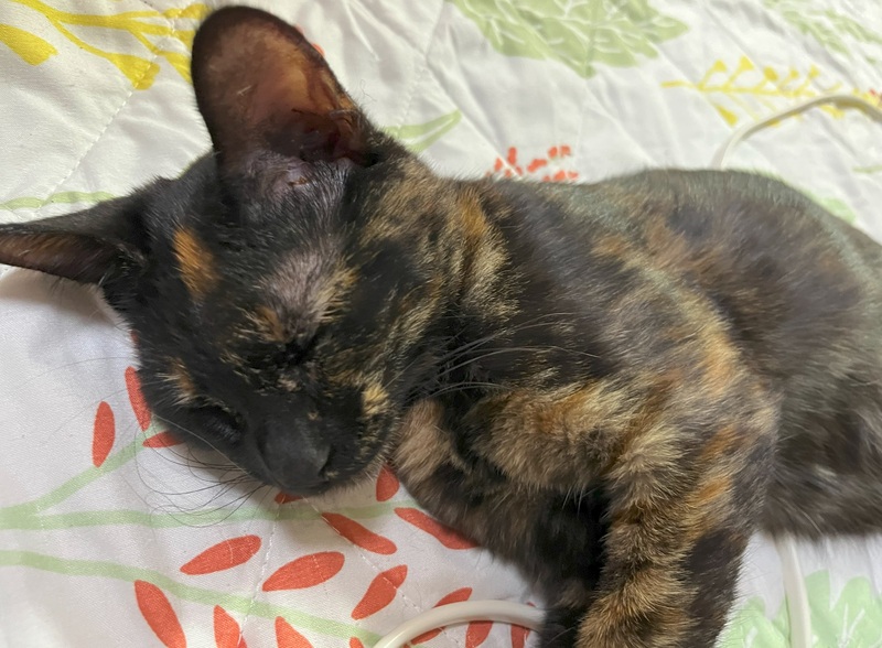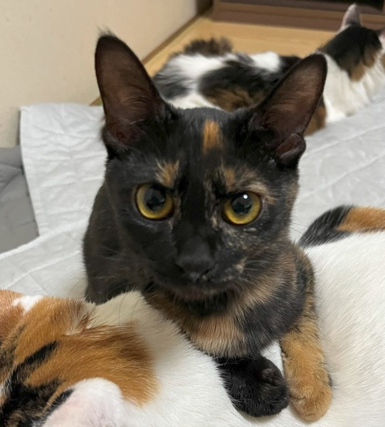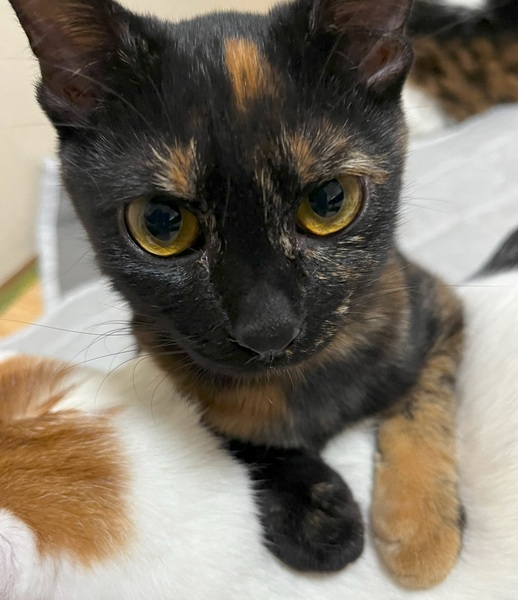 | 特徴(性格など) | 名前:あめだまちゃん 性別:メス 年齢:推定0歳7ヶ月 柄:サビ 健康状態:初回ワクチン、ノミダニ駆除済み エイズ白血病検査陰性を確認済み サビ猫のあめだまちゃんです。賢い子で一丁前。好奇心旺盛、しっかりもの。よく食べてよく遊びよく寝ています。人馴れ抜群、甘えん坊で、触られるとゴロゴロのどをならします。 |