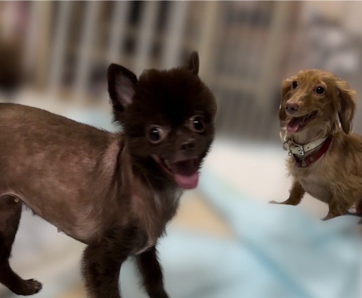 | 特徴(性格など) | 名前:めいっこ 犬種:ポメラニアン 性別:メス♀ 毛色:ブラウン 年齢:2歳くらい 体重:3.2kgくらい 性格:場所見知り犬見知り人見知り 全くない明るい性格の子です。 遊び相手を常に探してます。 犬種問わず両手を挙げて遊びに誘う姿は 萌え萌えです。 レスキュー時、 首元の皮膚が薄くなってましたが 徐々に生えてきています。 お散歩上手に歩けます。 外でも中でも排泄出来、シートの認識あります。 食いしん坊なのでおやつあげ過ぎ注意です。普段は吠えませんが 怪しい動きや聞き慣れない音には若干吠えます。 |