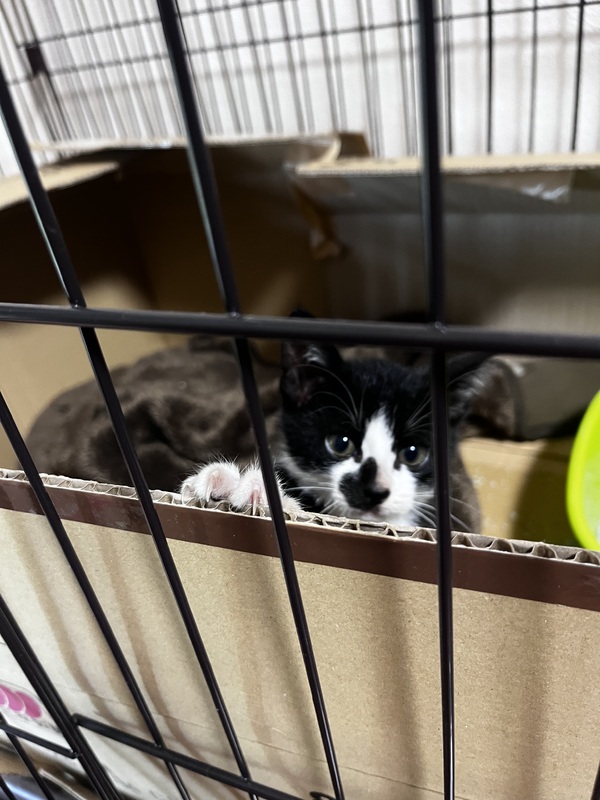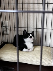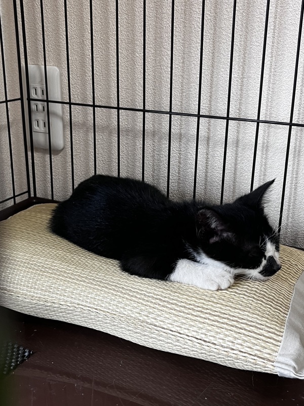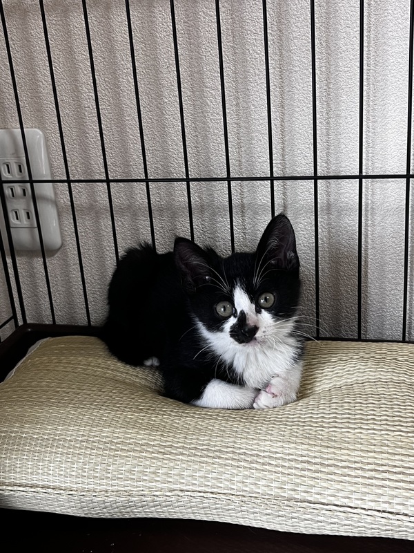 | 里親募集する理由 | 7月3日、自宅の駐車場で、カラスに狙われていたところを保護しました。 現在家に3匹猫がいて、これ以上飼うことはできない為募集致します。 |