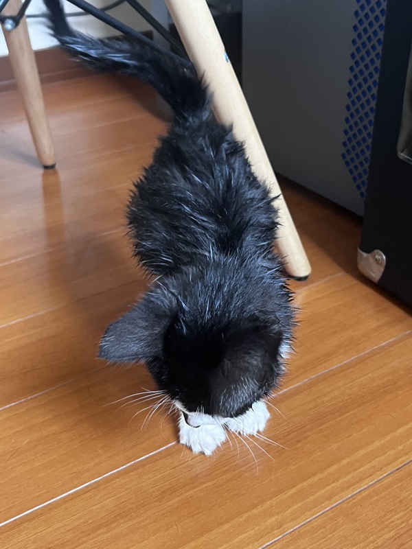 | 特徴(性格など) | まだちょっぴり怖がりさんですが、食いしん坊でパウチごはんが大好きな男の子です。 元気いっぱいで、遊び疲れてコロンと寝てしまうこともしばしばあります。 ・病院も暴れずいい子に出来ます。お薬はパウチに混ぜることで問題なくあげることができます。 ・お風呂も苦手ですが大人しく入ることができます。 ・現在歯磨き訓練中です。 ・現在は離乳しており、猫用ドライフードを食べております。 ・大きい音が苦手のようで、掃除機の音を怖がります。 |