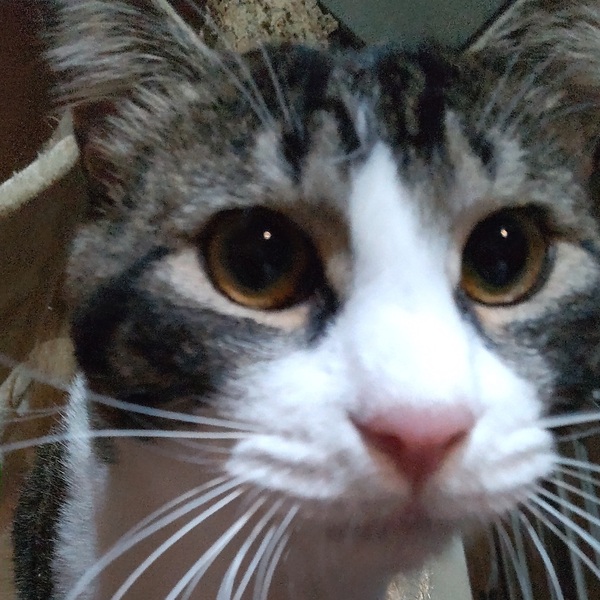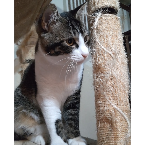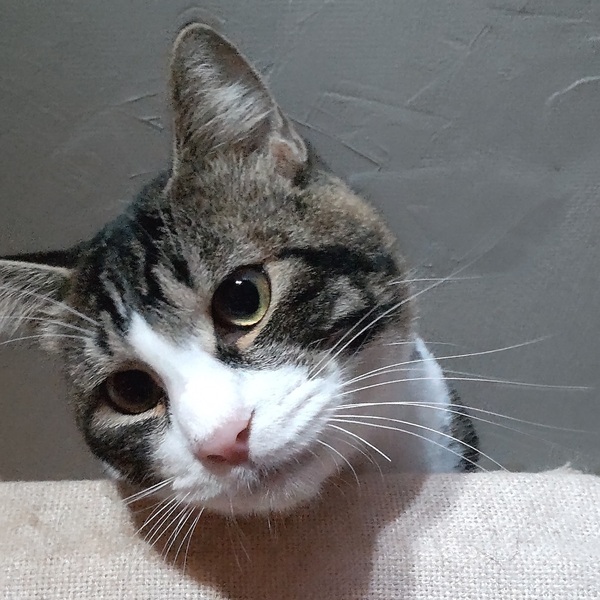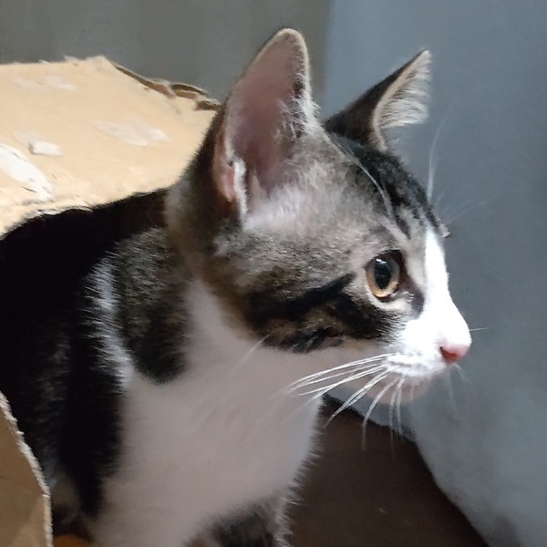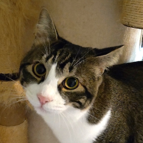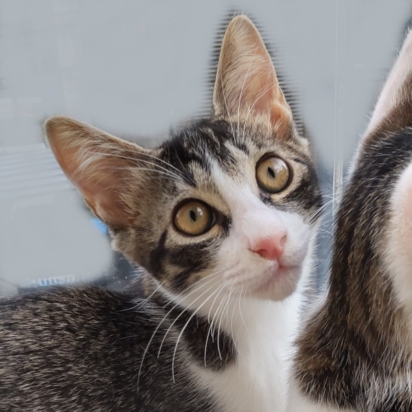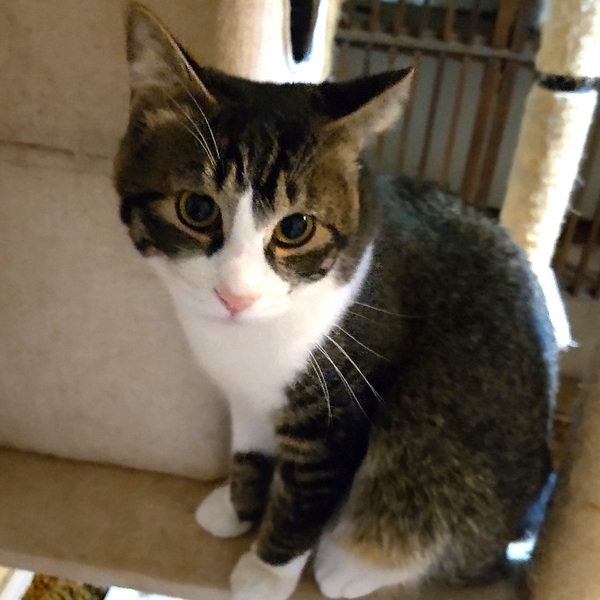 | 特徴(性格など) | 仮名:ピース 毛色:キジ白 瞳の色:茶色 尻尾:長くてまっすぐ 体重:4.54kg(11月23日現在) 性格・特徴:くっきりアイラインとその下のハイライトでクリクリお目目が強調されて、とってもかわいらしいピースくん。 キジの部分が多いキジ白で、背中にはシマシマがなく、ちょうどアビシニアンの黒バージョンのような感じの珍しい柄です。 タビー特有の目の横の模様はほとんどの場合、カラスの足跡のような3本線ですが、ピースは蝶の羽のようなキレイな模様です。 このところぐんぐんと大きくなって、生後7カ月にして大人顔負けの体格に! 手足が大きいので、まだまだ大きくなると思われます。 抱き心地も最高で、大きなむくむくの猫ちゃんがお好きな方にはたまらない子です。 保護時はシャーシャーと空気砲とひっかきのオンパレードでしたが、兄弟の中で最初に威嚇をやめて、逃げずに触らせてくれるようになりました。 保護から2週間後には、ヒザに乗せても嫌がらずに遊んでくれて、アスレチックのように体を上ってくる様子は悶絶するほどのかわいさでした。 その後、じゃれじゃれ期特有の強めの甘噛みとパンチ、キックがさく裂しましたが、保護から3カ月後にはパンチとキックはとてもやさしくなり、まったりしている時にはなでるとゴロゴロと気持ち良さそうにしてくれるようになりました。 最近では床に座るとやって来て自分からおヒザ抱っこをしてくれるまでに懐いてくれました。 ラブとおヒザの取り合いでケンカになってしまうこともよくあります。 妹のラブをはじめ、一緒に保護されている子と2匹での譲渡を希望します。 知らない猫さんには最初の数日だけ威嚇が出ますが、その後は徐々に慣れて仲良くなっていけるので、先住猫さんのいるお宅でも大丈夫です。 健康状態:快食快便の健康優良児です。 猫白血病、猫免疫不全ウイルスともに陰性。 ノミ・ダニ・お腹の虫の駆除済み。 マイクロチップ装着済み。 (登録申込書をお渡ししますので、ご自身で手続きをお願いします) |