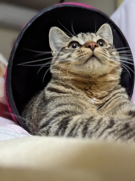 | 特徴(性格など) | 仮名:樹(いつき) 人も猫も大好きな甘えん坊です。 先住猫のおばあちゃんから年下子猫ちゃんまで 皆んなと仲良く出来るほのぼのお茶目な 性格イチオシの樹くん。 先住猫のいるお家にお勧めな可愛い子猫です。 健康状態 良好 体重 3.5kg(12/14) ワクチン2回接種 レボリューション済み 検便済み マイクロチップ挿入済み 今後の医療措置 特になし |