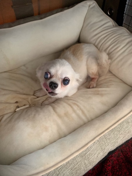 | 特徴(性格など) | とにかくひょうきんでこの子がいると家族がついつい笑ってしまう、と言うような感じの八兵衛。 生まれつき四肢は丈夫ではないようですし、目は両目とも齧られたようで 白濁しています。ですが本人は至って明るく、尻尾ぶんぶんで楽しい毎日を送っています |