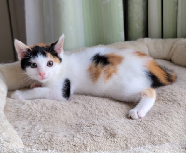 | 特徴(性格など) | 仮名: もなちゃん、メス 毛色: 三毛 性格: 初めて会う人は少し怖いのか、隠れてしまいますが、すぐに慣れて遊び始めます。 保護時は少しお腹が緩かったけれど、今は元気一杯で問題ありません。 ただ子猫なので、体調管理は気をつけてみて下さい。 まだ小さいので留守時間の短い環境が希望です。 他猫との関係性はまだよくわかりませんが、おおらかな先住猫さんのいるお家なら大丈夫だと思います。 駆虫済 3種混合ワクチン済 猫エイズ・白血病ウィルス検査はともに陰性 |