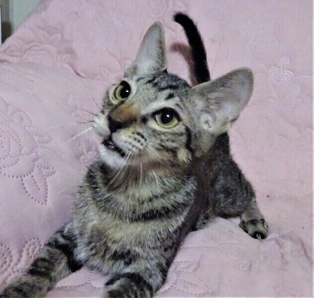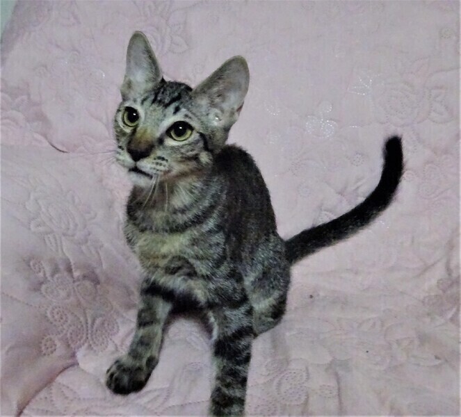 | 特徴(性格など) | 仮名: 黄河くん、オス 毛色: サバトラ 性格: ミルクで育っているので人には馴れていると思うのですが、手を出して捕まえようとすると一応逃げます。 遊びのつもりか? 多分、目薬や薬で毎日抱っこだったので、それを覚えてしまったのか? 手を出すと、薬だと思って少し逃げる傾向にあります。 威嚇なく抱っこ出来るので、捕まえて抱っこすると観念して甘えてきます。兄弟の大河くんとのプロレスも激しく、ケージから出ると捕まらない位走ったり、登ったりします。 活発で好奇心旺盛な子です。 兄弟一緒のご縁があると嬉しいですが、別々でも構いません。 じゃらしも大好きで燃えます。 一緒に遊べるような先住猫ちゃんのいるお家でも良いと思います。 子猫ですから、お届けは車で1時間圏内でお願いします。 検便済 駆虫済 3種混合ワクチン済 去勢手術済 猫エイズ・白血病ウィルス検査はともに陰性 |