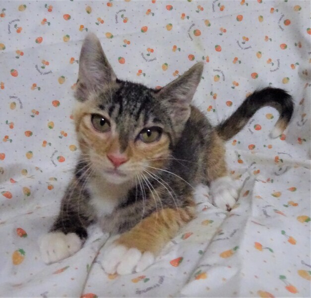 | 特徴(性格など) | 仮名: いのりちゃん、メス 毛色: キジトラと茶トラが混ざったような柄 性格: ミルクで育っていますから、人馴れはしていますが、最近、目薬や薬が多かったので手を出すと捕まらないように逃げたりしますが、威嚇なく抱っこ出来ますので、簡単に捕まります。 姉妹の中では一番積極的で好奇心旺盛、真っ先に近寄ってきて挨拶します。 抱っこすると甘えん坊になります。 姉妹のかなえちゃんとは仲良しですので、一緒のご縁があると良いですが別々でも構いません。子猫ですからお届けは車で1時間圏内でお願いします。 検便済 駆虫済 3種混合ワクチン済 猫エイズ・白血病ウィルス検査はともに陰性 |
