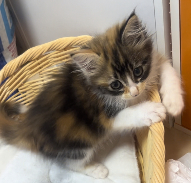 | 特徴(性格など) | 長毛三毛 三毛猫らしい性格ですが 大人しく愛らしい |