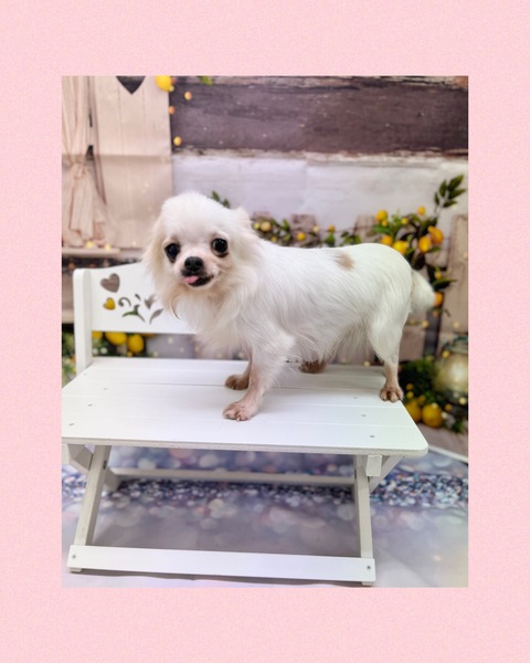 | 特徴(性格など) | 小さな身体で元気いっぱいな女の子です。 他のワンちゃんとも仲良くできます。 繁殖引退犬につき、一般家庭での躾は1からとお考えください。 |
