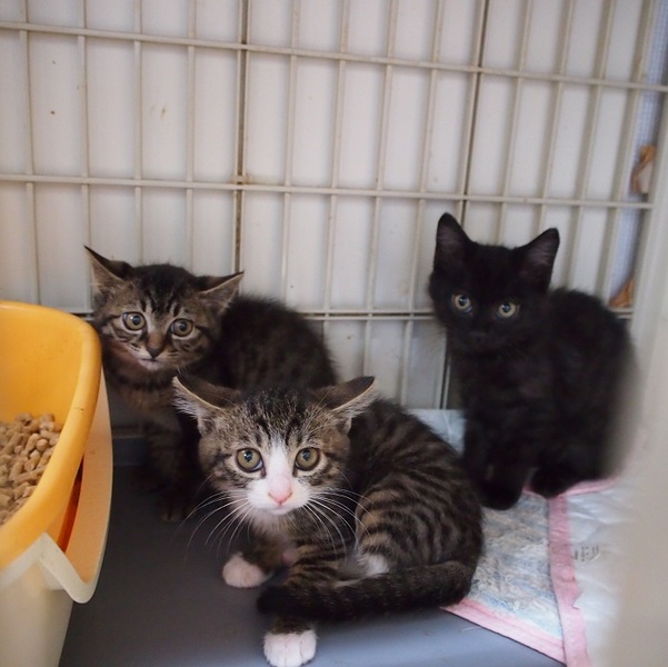 | 里親募集する理由 | 近所の人たちが、子猫がいると騒いでいました。 親猫もいたらしいのですが、騒ぎに驚いたのか、どこかに行ってしまって、 子猫が3匹取り残されました。。。 生後2か月くらいのチビちゃんです。 生涯大切にしてくださる優しい里親さんを探しています。 |