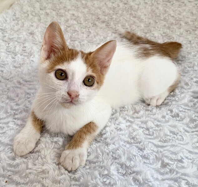 | 特徴(性格など) | 【仮名】アーリオくん 【性格】ただの茶白のアーリオくん♪ 一緒に過ごすとナデ心地といい 甘ったれぶりといいやんちゃっぷりといい 可愛すぎてずーっと一緒にいたくなる やみつきニャンコです♪ 食べるのも遊ぶのも寝るのも大好き! でスクスクと成長中♪ まだまだ色々学習中なので兄妹のオーリオちゃんか 同世代とのペアでお迎えの方のみ希望します♪ ※1ピキ譲渡不可 |