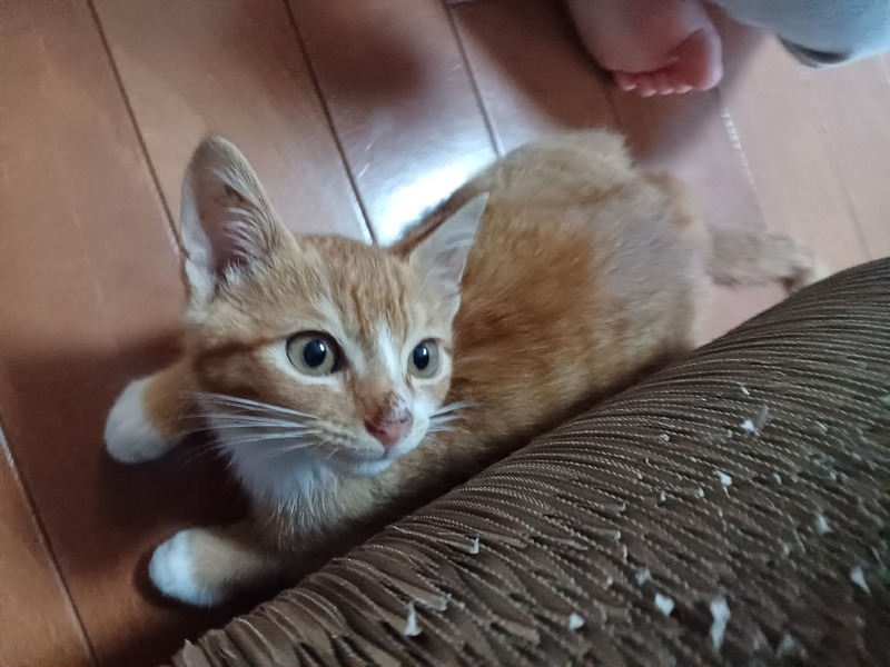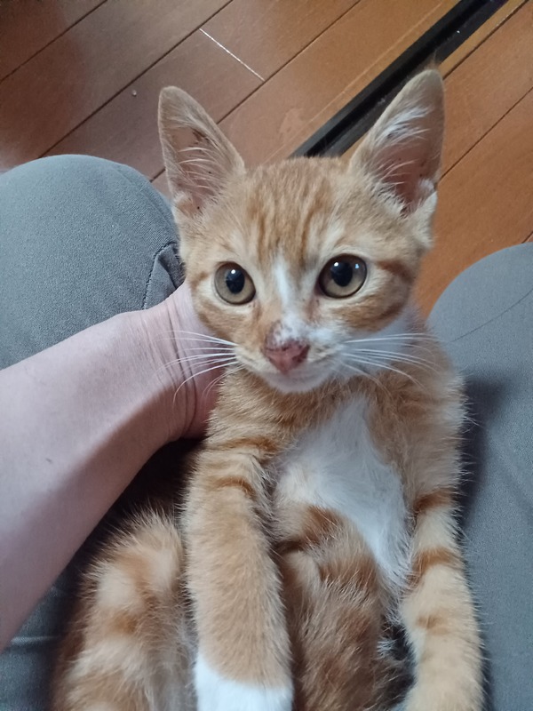 | 特徴(性格など) | 少しビビリですが、大人しく抱っこできます!ゴロゴロ喉をならしてます。 隙あらば部屋の隅に隠れますが、チラチラとこちらを伺って、同居猫の尻尾を追いかけたりします!可愛いですよ! |
