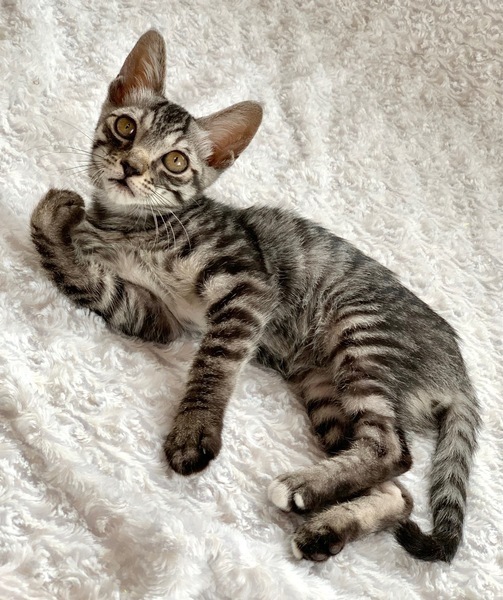 | 特徴(性格など) | 【仮名】ベータくん 【性格】カッコイイ系のベータくん♪ グレーキジトラじゃなくてホントにシルバーキジトラなんですよ♪ トラ柄もしっかりクッキリでプレミア感漂うにゃんこです! 保護当初はまあシャーでしたが今ではアマアマにゃんこに大変身! ナデナデアピールも出来るし寝る時は必ずベッドで一緒だし みんなと遊ぶのもOKなんです♪ まだまだ色々学習中なので同世代とのペアで お迎えの方のみ希望します♪ ※1ピキ譲渡不可 |