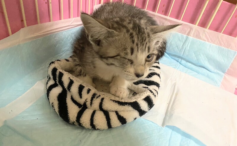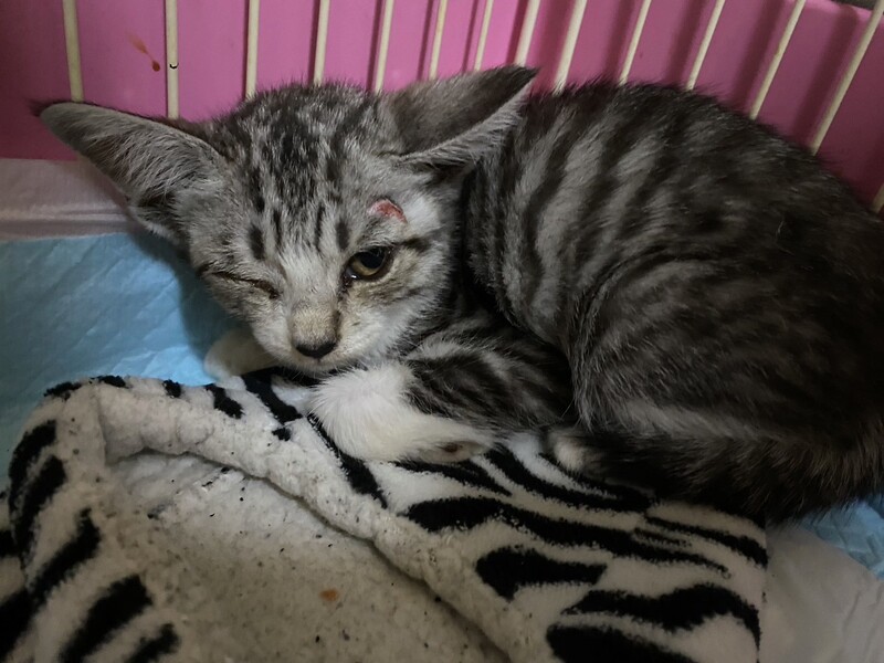 | 里親募集する理由 | 地域猫の母猫と兄妹猫と居たところで、怪我をしている為一旦保護されました。 でも保護できる人がいない為7/22までに貰われなければ元居た場所へ戻す予定です。 でも地域猫でなく、里親に出してあげたいので。 怪我は化膿など無く、そのまま治っていきそうです。 元気食欲があるので特に病院は行っていません。 鼻水はありませんが、右目は目ヤニがありそうです。保護したばかりの写真の為、目ヤニが拭けていない写真です。 |