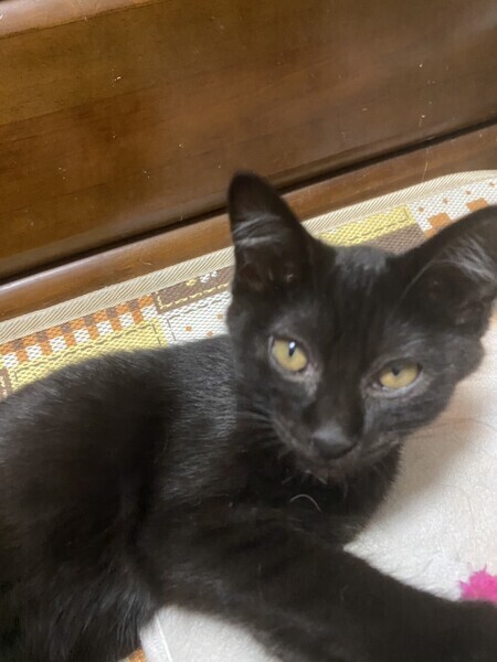 | 特徴(性格など) | ◆ねーねちゃん 人馴れした穏やかな黒猫の女の子 ●月齢の小さな子猫は、以下の条件についてご了承の上で応募をご検討下さい。 ◆お留守番の少ないご家族を希望します。 ◆2匹でお迎えくださるご家族を優先いたします。 ◆小さなお子様のいるご家庭は状況によりお断りする場合がございます。 ◆高齢者のみのご家族からの子猫のお申し込みはお受けしていません。 ○神奈川県川崎市内にて、外にいるところを保護されました。 ○生後2ヶ月半くらい(2023年7月中旬時点)の黒猫の女の子です。体重は1350g(2023年7月14日時点)です。 ○尻尾は太めで中くらいの長さです。 ○少し臆病で物静かな子です。大きい音がすると隠れちゃいます。 ○でも人が好きで、いつの間にかくっついていたり抱っこもさせてくれる優しい子。 ○穏やかな性格です。 ○元気にすくすく育っています。 ★ワクチン1回済み。 ★猫エイズ、猫白血病ともに陰性。 ★不妊手術は成長と体調を見て実施予定です。 ○YouTubeにも動画をあげています。こちらもご覧下さい。 「ねーね」https://youtu.be/p-IWyn2C9U ○7/23(日)開催の譲渡会に参加予定!下の要項をお読みいただき、ぜひ会いに来てください♪ ☆★☆★☆★☆★☆★☆★☆★☆★☆★☆★☆★☆★☆★☆★☆★☆★☆★☆★☆ 7月23日(日)荏田にて譲渡会開催! ◎場所・・「島忠 荏田店」 神奈川県横浜市青葉区荏田西1ー3ー14 田園都市線「江田」駅より徒歩約7分 246号線江田駅交差点そば ◎日程・・7月23日(日)(雨天決行) ◎時間・・13時から16時 【15時30分受付終了】 (会場に利用可能な無料駐車場がございます。そちらをご利用くださいませ。) *参加の際は、マスクの着用、アルコール消毒のご協力をお願いいたします。 *当日は検温の上、体温が37度以上の方はご参加いただけません。 *混雑状況により、中止させていただく場合がございます。 ※参加予定の犬猫は体調により参加できない場合があります。ご了承ください。 ☆★☆★☆★☆★☆★☆★☆★☆★☆★☆★☆★☆★☆★☆★☆★☆★☆★☆★☆ |