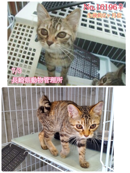 ⭐【 ①〜⑱のアンケート】にお答え頂けない方、アンケート内容が曖昧な方は、譲渡のお話を進めていけない為、お返事は致しかねますので予めご了承くださいませm(_ _)m ↓ ⭐️No.16196 グルンと尾曲がりちゃん ⭐️No.16197 短め鍵シッポちゃん ♡人懐こくて元気いっぱい、スリゴロのちびっ子キジちゃん姉妹です(^^) (段ボールに入れられ公園に遺棄されていました)収容当初は痩せて栄養状態も良くありませんでしたが段々と改善されてきており、活発に遊ぶようになってきました(^^) 猫砂でのトイレも出来ています。 この子達ならきっとじきに新しい家庭に馴染んでいけると思います? ⭐️完全室内飼育で、譲渡後速やかに病院受診、健康診断、混合ワクチン、生後4〜6ヶ月を目処に不妊手術をする事が可能な、なるべくお留守番の少ない沢山優しく触れ合っていただけるご家庭。 ⭐️新しい環境に慣れるまで、もしかしたらトイレの失敗などあるかもしれませんが覚悟と根気・理解で受け入れて下さる方m(_ _)m ※混合ワクチン、ウイルス検査実績はありません。エイズや白血病陽性等の可能性も0では無くあり得ることとなります(>_<) 以上の点を踏まえ、この子達の置かれている状況、寂しくて不安もいっぱいであろう心をご理解のうえ、全て受け入れ寄り添っていただけるご家庭で終生可愛がっていただきたいと祈っております。 収容された全ての子達は、身勝手な人間による被害者であり、何も悪くありません( ; ; ) 家族の一員として生涯大切にしてくださる優しいご家庭とのご縁が結ばれ幸せになれます様にm(_ _)m ☆⭐︎ 家族を必要としています。 のびのびと遊んだり、抱っこされてスリスリ目一杯甘えたりさせてあげたいです。 人間よりはるかに短い生涯です。元気に幸せに生きてほしいです。 この子達にどうか温かい手を差し伸べて下さい。 安心出来る、愛してくれる温かい家庭、当たり前の幸せを知ってほしいです。 まだまだこれからの命を、絶対に幸せに過ごしてほしいと願っています! どうか宜しくお願い致します。本当本物の家族になっていただけませんか。 ご連絡をお待ちしております♡♡ ◆健康状態 まだ幼く頻回にフードを食べさせる必要があります。今のところ元気にしていて成長期用ドライフードを食べられるようになってきました。 ※管理所では収容するのみ になり、健康診断やウイルス検査、ワクチンなどは一切行っておらず、トライアル制度もございません。 何か病気があるのか、無いのかも分かりません。 ※一度引き出して検査だけをする事も出来ませんm(_ _)m この子達の全てを丸ごと受け止め、 終生愛情飼養で迎えて下さる方のみ への譲渡となります事をご理解、ご了承くださいませ。 収容動物の健康面の保証はございませんのでお迎え後は直ぐに病院でメディカルチェック、混合ワクチン、生後4〜6ヶ月を目処に不妊手術を確実にお願い致します。 ※去勢、避妊手術は長崎県動物管理所より譲渡条件の1つになりますが、何らかの疾患が見つかり治療が優先→不妊手術が延期、又は避けるとなった場合には年齢・健康状態を考慮の上獣医師の判断を仰ぎ、ご報告を頂いております。 混合ワクチン接種も同様となりますm(_ _)m (その際の診断書を写真、もしくは郵送にてご提示して頂いております。) また、例えどんな病があろうとも最期まで責任を持って家族として迎えて下さる覚悟のある方でないと、保健所収容されている犬猫ちゃんの迎え入れは難しいです。。 何卒ご了承くださいませm(_ _)m ★逸走、脱走にはくれぐれもご注意願いますm(_ _)m 交通事故等、命に関わります! 病院へは必ずキャリーに入れて連れて行ってください。 ☆ノミマダニ駆除のフロントラインスプレー済み。 ⭐️コクシジウム駆虫薬のプロコックス投与済みです。 ◆混合ワクチン接種、不妊手術の有無 未接種 未避妊(必ず不妊手術をする事をお約束頂いております) |