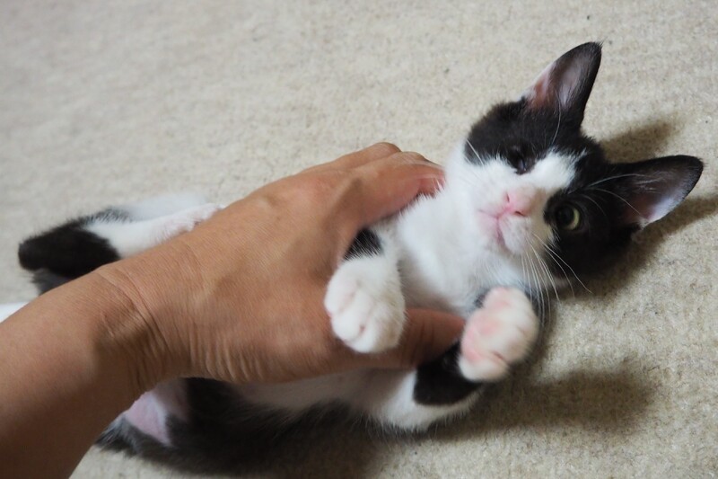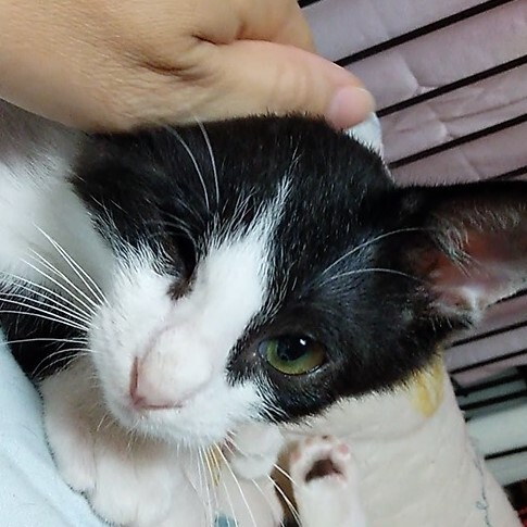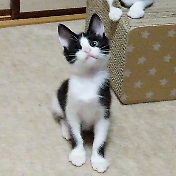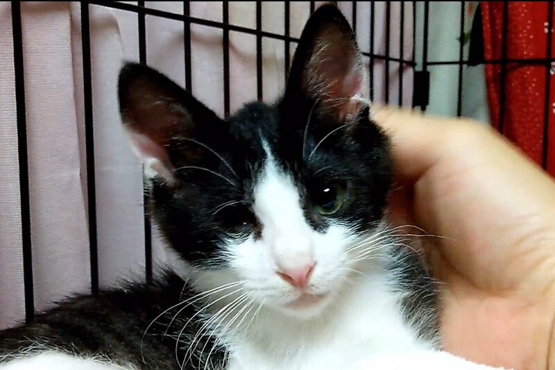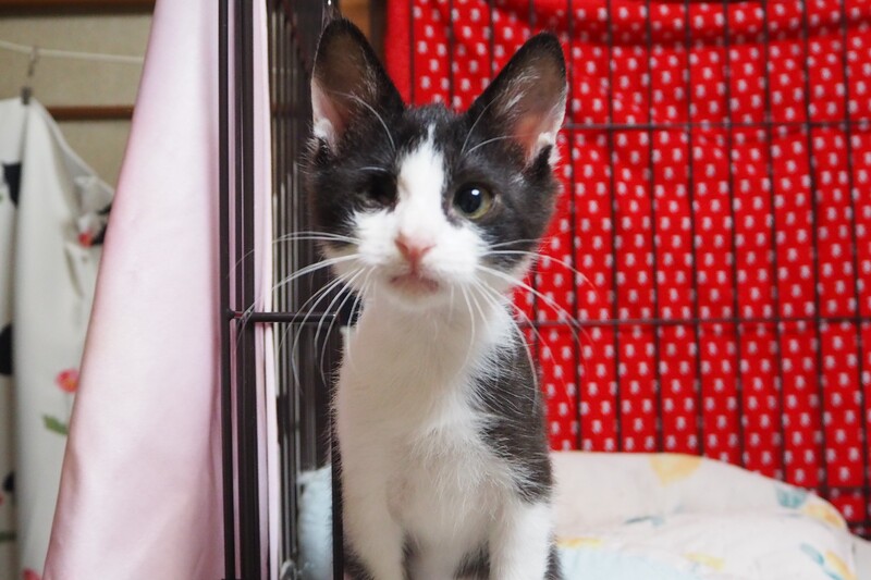 | 里親募集する理由 | 知り合いのお庭で仔猫が産まれてしまったと相談を受け、兄弟たちが風邪をひいていてかわいそうに思い、一緒に保護しました。 眼に障害がありますが生活に支障はなく元気いっぱいです。 |