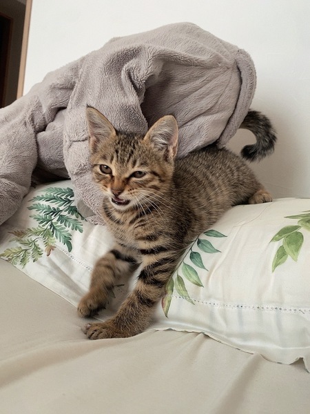 | 特徴(性格など) | 推定2ヶ月のキジトラ男の子です。 ずっとゴロゴロスリスリして甘えん坊です。 おもちゃ大好きで元気がありあまってます笑 トイレもすぐに覚えてお利口さんです! |