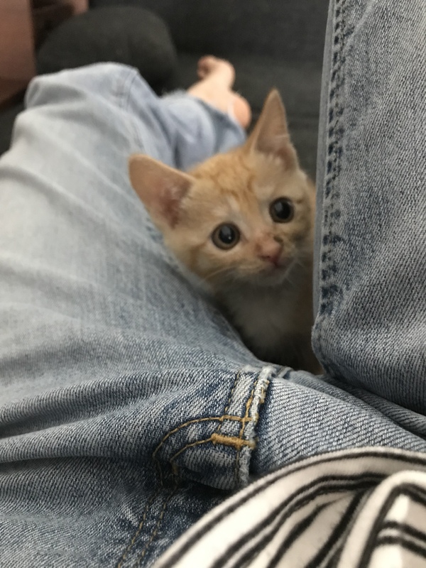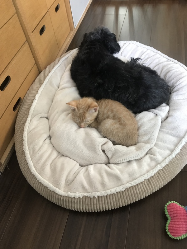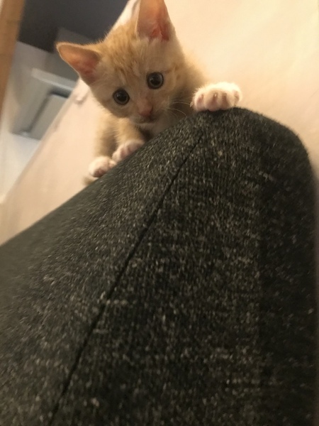 | 特徴(性格など) | 茶トラ女の子 手足の先っぽと胸が白毛 他はクリーム色で薄いトラ柄 性格はやんちゃ、犬や子どもが好き、マイペース?、ちょっとドジ、来客にもフレンドリー、ハーネス装着で庭のお散歩に行きたがります。 |