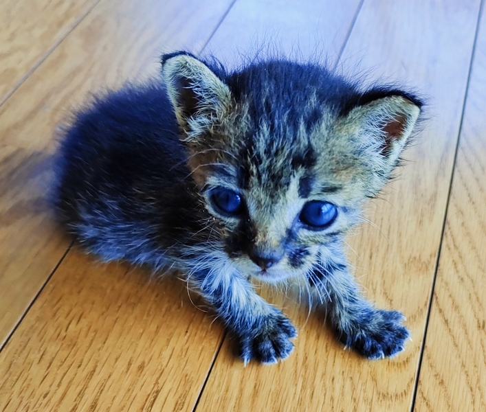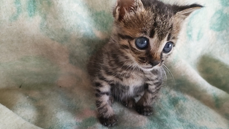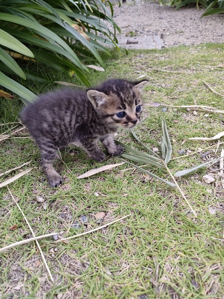 | 特徴(性格など) | クリッとした大きな目がかわいいキジトラちゃんです。 好奇心旺盛で元気いっぱい。最近は室内の探検に夢中になっています。食後は撫でられたり構われたりしたいようで、甘えん坊な一面も。 また、うちにおる他猫と比べてもお利口さんで、容姿も子猫だということを差し引いても美形だと思います。 |