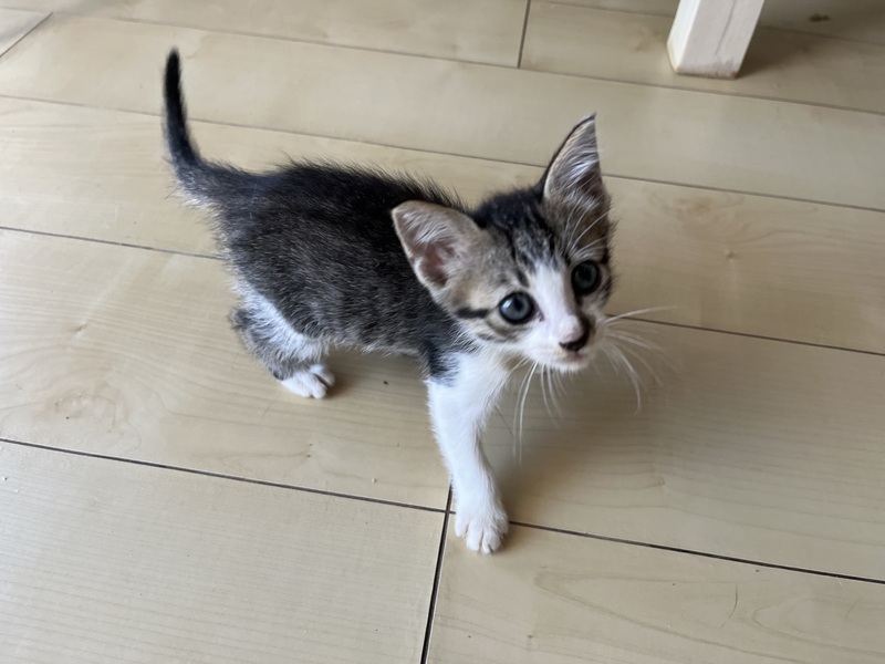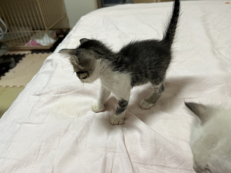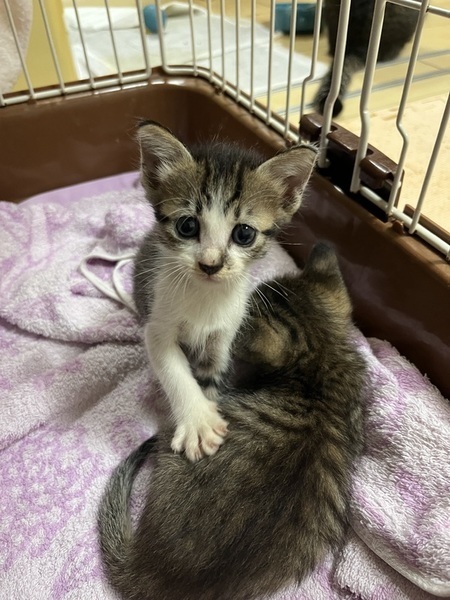 | 特徴(性格など) | キジシロの女の子。 きょうだいイチのおてんばガール笑 とても人懐こい性格で、寝る時必ず私の膝に来て寝ています。おめめくりくりで小顔でとてもかわいいお顔です。 |