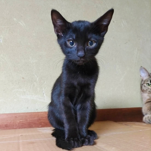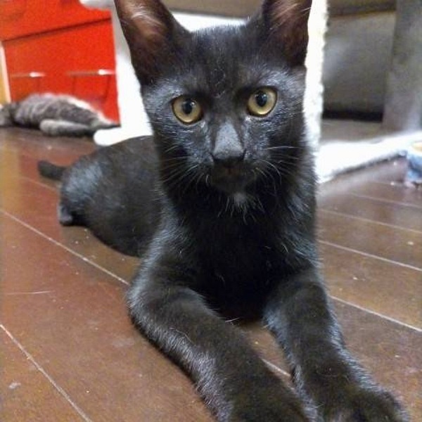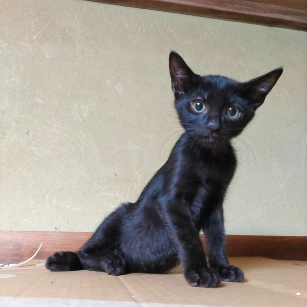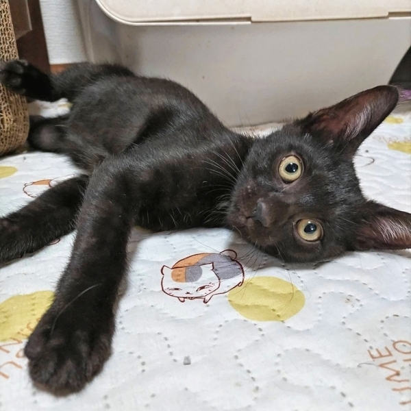 | 特徴(性格など) | 短毛で小顔、長い手足のモデル体型の女の子です ママの言いつけを守り人には警戒心強めですが噛むでも手が出るでも無いシャーは全然恐くないです。。 兄妹猫のチョコくんの分も私がしっかりしなきゃと気を張っている様子ですが オモチャやオヤツの時には警戒心もどこへやらなので楽しいと美味しいの繰り返しであっという間に仲良くなれると思います。 黒猫のくくりですが今は焦げ茶で縞模様も見える変わった毛色をしています。 お留守番が無いか短いお家。 まだ子猫なので健康管理をしっかりしてくださる方。 安全に暮らせるように脱走対策、お部屋の片付けを徹底してくださる方。 玄関や窓まわり、リビングなど対策が必要な場所の写真を見せていただけるとより提案がしやすいです。 |