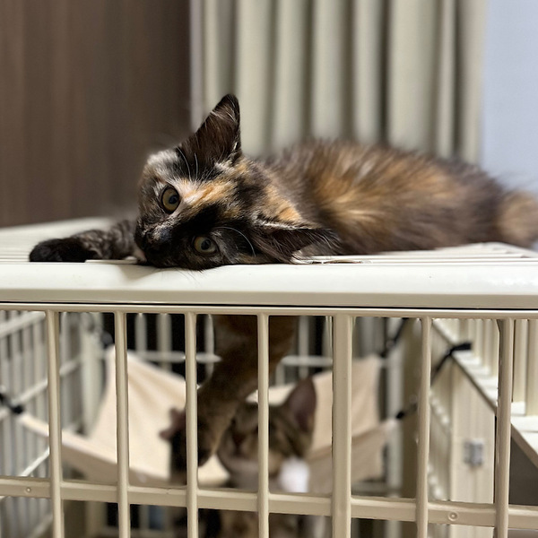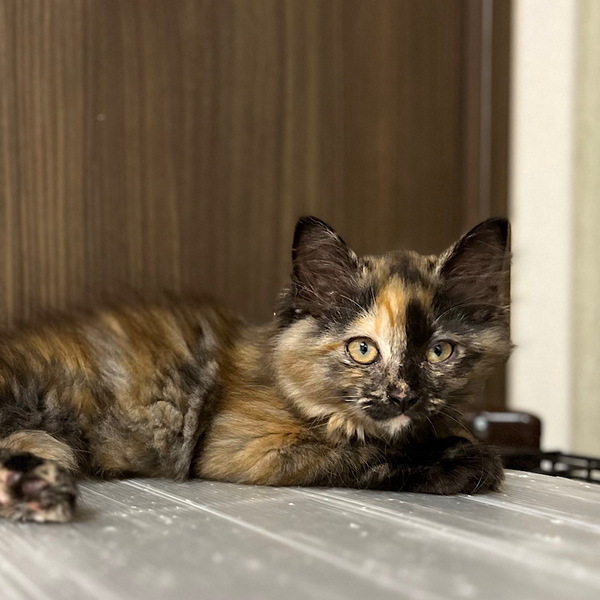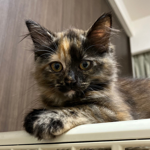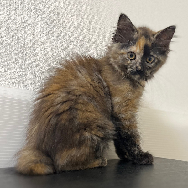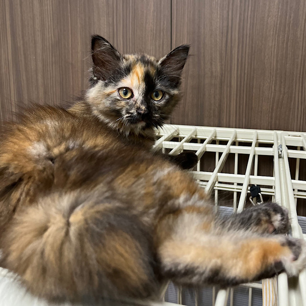| 特徴(性格など) | サビ柄の長毛の女の子。あだ名はつむちゃん。顔の右側が明るい柄で、尻尾は短いカギしっぽです。撫でるとゴロゴロ喉を鳴らしてくれます。 ツンデレかと思いきや、お気に入りの人間には走って来て甘えるデレデレです。 人間の動きをよく見ていて、一瞬の隙をついて扉をすり抜けようとする賢いねこさんです。 少しずつ心を開いてくれるつむぎちゃんに癒されたい方、つむちゃんのペースに合わせてくれるご家庭にお願いしたいと思っています。 |