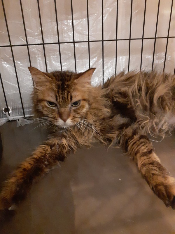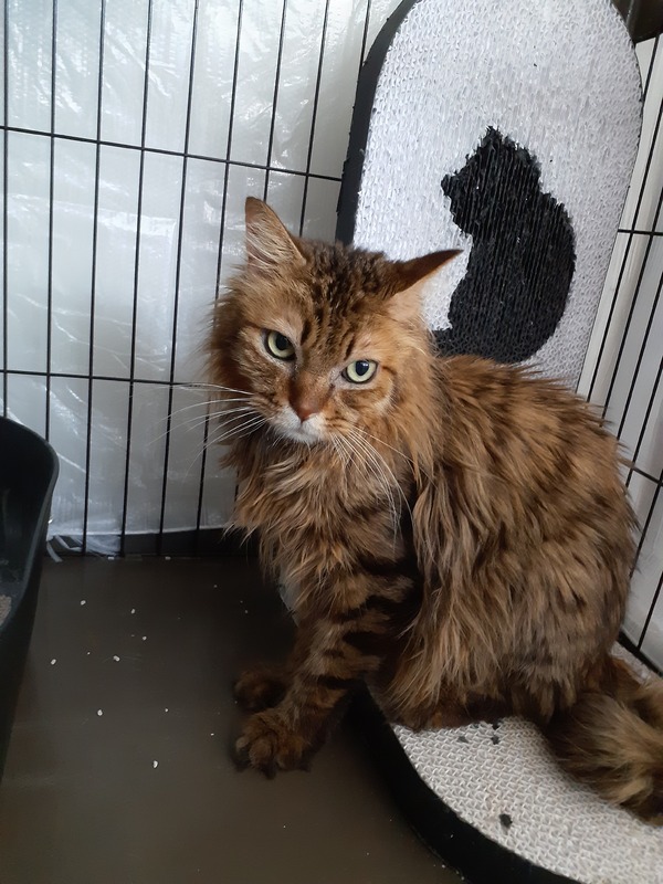 | 特徴(性格など) | 色柄 茶系きじとらの長毛 性格・特徴 ・臆病 ・威嚇はあまりしない ・静か ・のんびり穏やか ・他の子と仲良くなれる ・高いところにあまり上がらない ・ゆっくり食べる ・ロイヤルカナンが好き ・黒缶が好き ・おやつが好き |